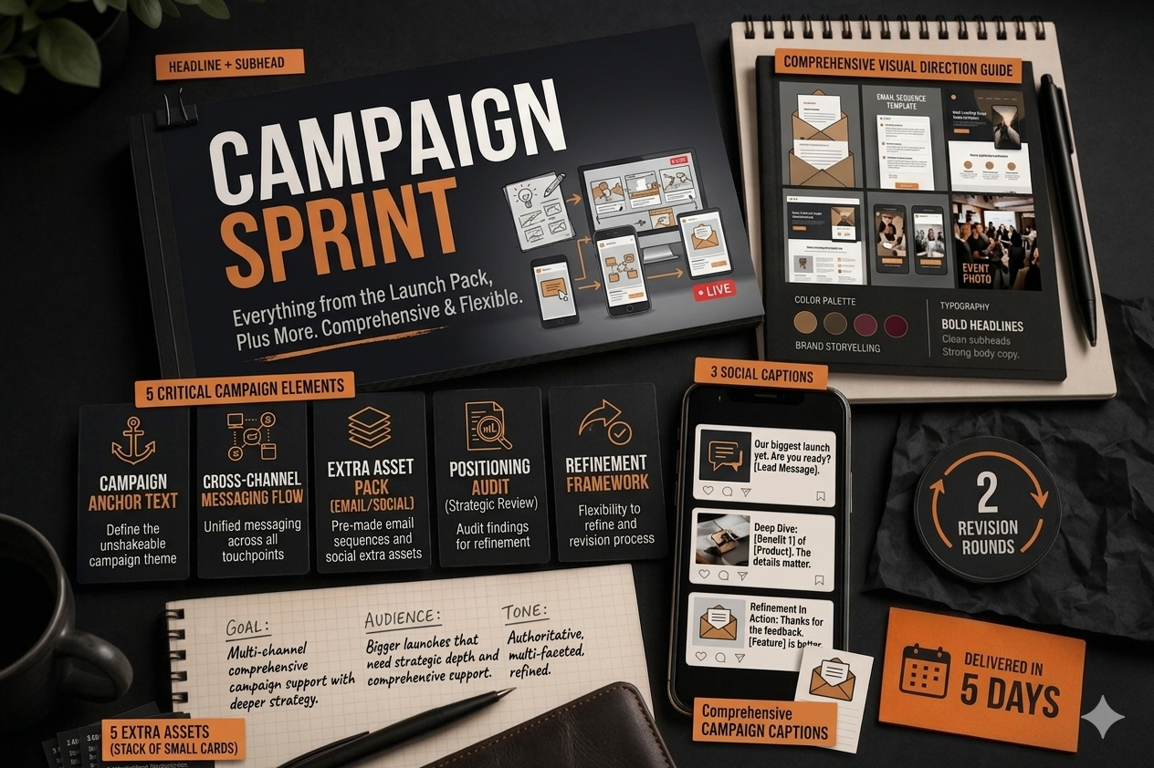 Perfect for bigger launches that need more messaging, more assets, and stronger strategic support across the campaign.